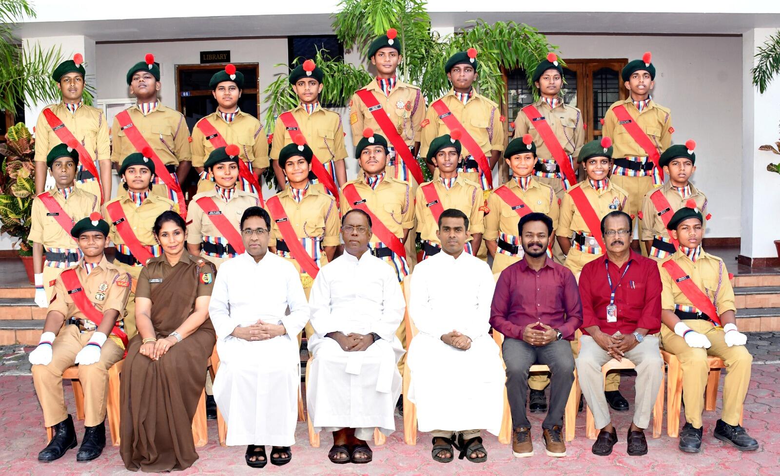 The National Cadet Corps which was started in our school in 1999, aims at developing character comradeship, Sportsman ship, spirit of adventure, end ideals of selfless service among the students. The activities of NCC provide a suitable environment to motivate the cadets to train end groom themselves as responsible citizens, future leaders of our great country in all walks of life end also to take up a career in the Armed Forces. Through camps NCC gives ample opportunity for community living and by the visits to hill stations cadets get chances for expeditions, trekking end mountaineering. An NCC parade is held every Wednesday and Friday from 2.00 pm to 4.00pm and also conducting the special training for UP section students. The school NCC unit is under (2) Kerala Battalion NCC Thirumala.